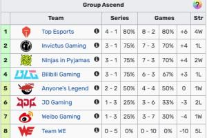 体育资讯4月17日讯 今日LPL赛程全部结束,赛后数据网站也更新了今日之后的登峰组排名;截止目前排名积分榜前三的队伍为:TES、iG、NIP ,而此前的先锋赛冠军BLG以小分劣势排第四位。