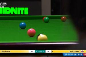 比赛最后一局,丁俊晖做出一杆完美的斯诺克,母球紧贴黑球,红球则藏在绿球身后,吉尔伯特尝试解球未能解到,送出自由球。
