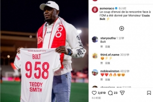 摩纳哥官方ins写道:“欢迎博尔特先生来到现场,为球队与马赛的比赛开球。”