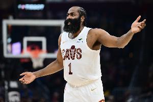 上半场,骑士后卫哈登高效发挥,出场17分钟7投6中,三分3中2、罚球6中5砍半场最高19分外加4篮板4助攻2抢断,正负值+2。