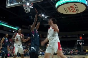 GIF-杨瀚森篮下强攻被吹走步